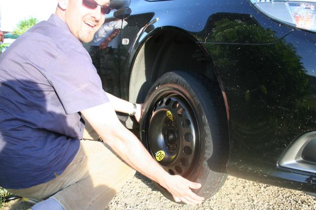 Que je sois un pneu peu crevé par l'organisation du meeting c'était prévisible non ?Je suis juste déçu que la seule "couille" du meeting lui soit arrivé à lui....Spéciale dédicace aux Turbo X...avec une roue galette, la voiture est tout de suite moins impressionnante, la preuve en image