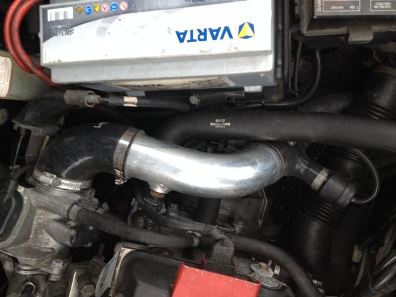 Vu que ce turbo à un débit plus important et que l'entrée et la sortie de l'échangeur d'origine est en 60mm, j'en ai profité pour me faire un conduit en alu sur mesure qui est un peu dans le style Abbott http://www.abbottsaab.com/product/9000- ... -kit-9000/ mais 2 x moins cher :